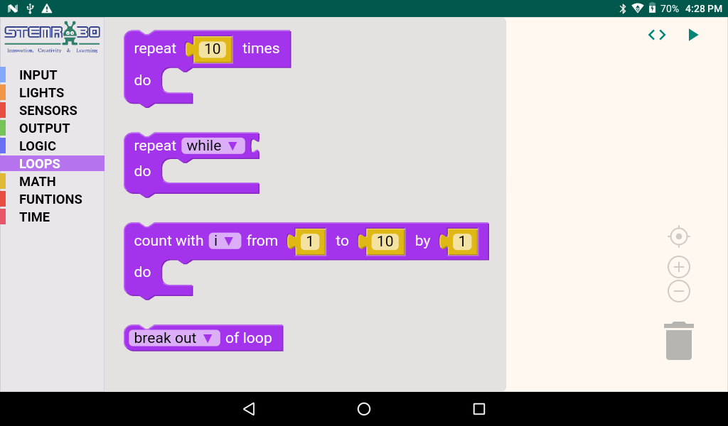 แอพการเขียนโปรแกรม GUI แบบบล็อกที่สนับสนุนการศึกษาของ Tinker Orbits