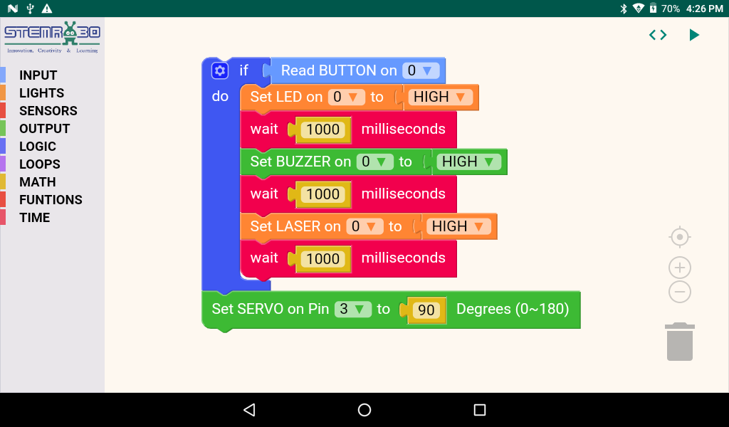 แอพนี้อนุญาตให้เด็ก ๆ เชื่อมต่อบล็อกอย่างปริศนาเพื่อสร้างรหัสที่จะควบคุมชุดการศึกษาของ Tinker Orbits