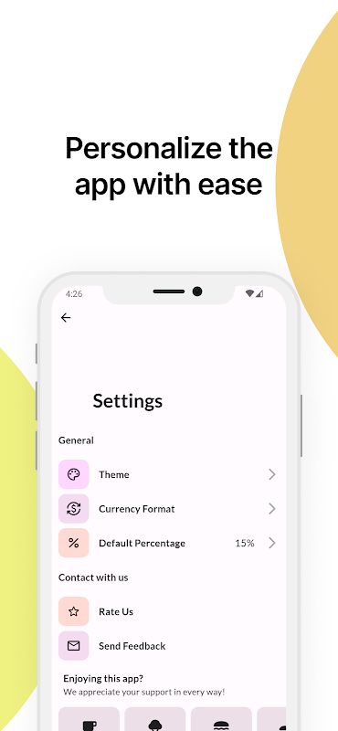 - ตั้งค่าเปอร์เซ็นต์ทิปเริ่มต้นที่คุณต้องการ ดังนั้นคุณไม่จำเป็นต้องป้อนเปอร์เซ็นต์เดิมทุกครั้งที่ใช้แอป 😌