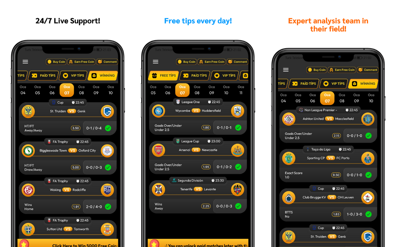 สิ่งที่ทำให้ Tipsmax Betting Tips แตกต่างจากแอพเคล็ดลับการเดิมพันอื่น ๆ คือทีมวิเคราะห์ที่มีประสบการณ์ 10 คนของเรา ทีมของเราไม่เพียงแต่ประกอบด้วยคนธรรมดาเท่านั้น แต่ยังประกอบด้วยอดีตนักฟุตบอล โค้ช และคอลัมนิสต์กีฬาอีกด้วย ด้วยเหตุนี้ เคล็ดลับการเดิมพันของเราจึงไม่เพียงขึ้นอยู่กับการคาดการณ์เท่านั้น แต่ยังรวมถึงการวิเคราะห์ที่ครอบคลุมที่สร้างจากข้อมูลที่แข็งแกร่งอีกด้วย เคล็ดลับทุกข้อได้รับการตรวจสอบอย่างรอบคอบโดยสายตามืออาชีพก่อนที่จะแชร์กับผู้ใช้ของเรา