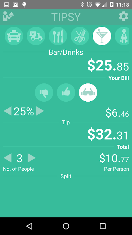 Tipsy is an elegant way to calculate your tip at various venues.