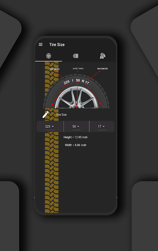 เมื่อใช้เครื่องคิดเลขคุณจะเห็นความแตกต่างของความกว้างยางรัศมีเส้นผ่านศูนย์กลางเส้นรอบวงและความเร็วจริงของรถหลังจากเปลี่ยนขนาดยางและล้อในมุมมองกราฟิกที่เรียบง่ายและชัดเจน