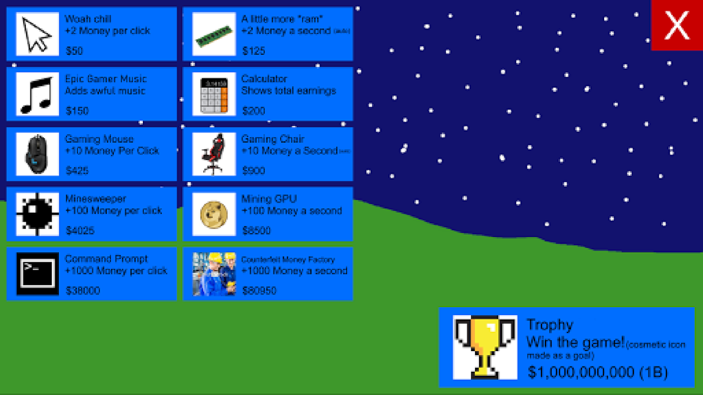 เกม clicker ที่มีองค์ประกอบตลกมากมายหมุนไปรอบๆ *ข้อมูลปกปิด*