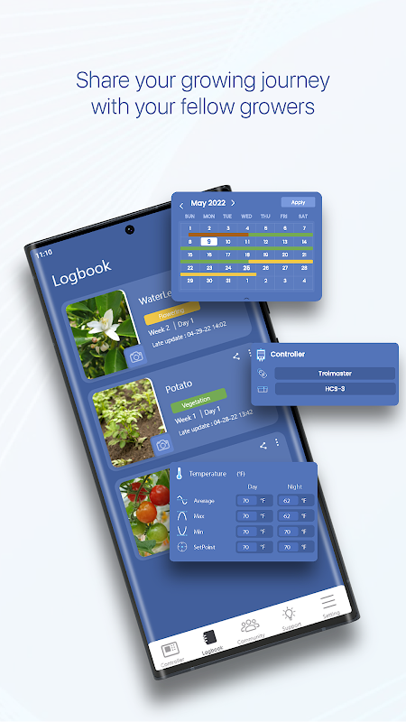 - ฟังก์ชั่น Logbook ใหม่: ให้คุณติดตามขั้นตอนโรงงาน เวลา และวันที่ของคุณ บันทึกข้อมูลพืช เช่น สภาพแวดล้อมและพารามิเตอร์การให้อาหาร ข้อมูลโรงงานและรายละเอียดการตั้งค่าห้อง