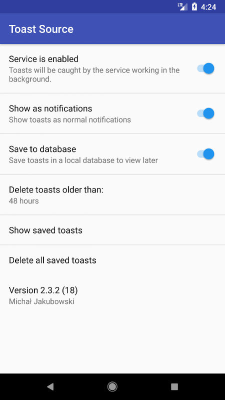 app นี้ใช้บริการการเข้าถึง พวกเขาจะใช้สำหรับการตรวจสอบขนมปังปิ้งและการอ่านเนื้อหาของพวกเขาเช่นเดียวกับเมตา (เช่นชื่อและที่ระบุของแอปที่สร้างขนมปัง)