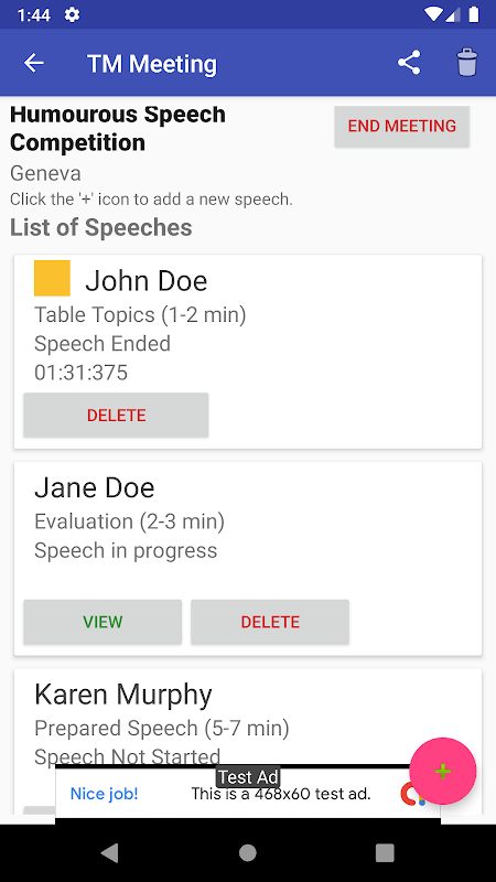 แอปจับเวลา Toastmasters (TM) สร้างการประชุมเพิ่มรายละเอียดผู้พูดและเริ่มจับเวลา