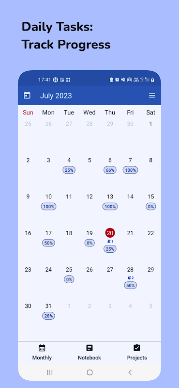 * ใช้ตัวชี้วัดเปอร์เซ็นต์ในปฏิทินเพื่อติดตามความคืบหน้าของคุณในแต่ละวัน