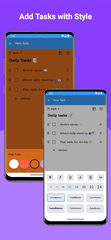 TodoMaster คือแอปจัดการงานและไม่มีโฆษณาแบบออฟไลน์ที่ออกแบบมาเพื่อช่วยคุณจัดการและจัดระเบียบงานประจำวัน รายการสิ่งที่ต้องทำ บันทึก การเตือนความจำ รายการตรวจสอบ กิจกรรมในปฏิทิน รายการซื้อของ และอื่นๆ อีกมากมาย ไม่ว่าคุณจะเป็นนักเรียน มืออาชีพ หรือแค่คนที่ต้องการจัดระเบียบ TodoMaster จะทำให้การจัดการงานง่ายขึ้นด้วยการออกแบบที่ใช้งานง่ายและคุณสมบัติที่แข็งแกร่ง