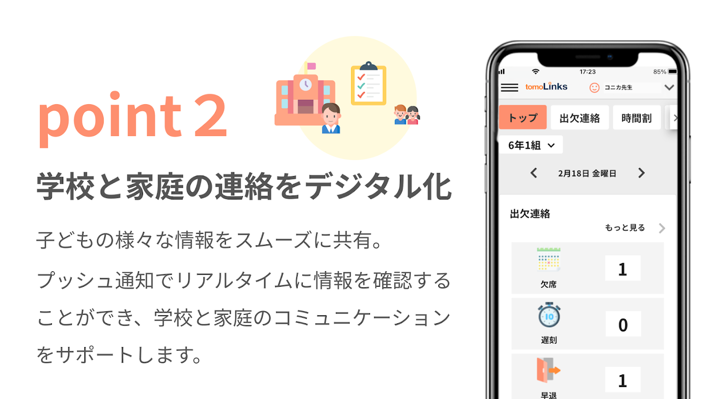 คุณสามารถตรวจสอบข้อมูลแบบเรียลไทม์ด้วยการแจ้งเตือนแบบพุช รองรับการสื่อสารที่ราบรื่นระหว่างโรงเรียนและที่บ้าน