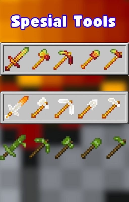 คุณสมบัติของ Tools Mod สำหรับแอพ Minecraft PE นี้: