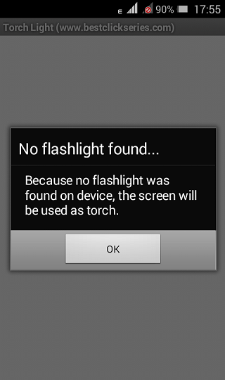 Torch Light app by Best Click Series is designed for android device with or without camera flash lights. If android device has camera flash light, the camera flash light will be used as torch light. If android device does not have camera flash light, the screen will be used as torch light