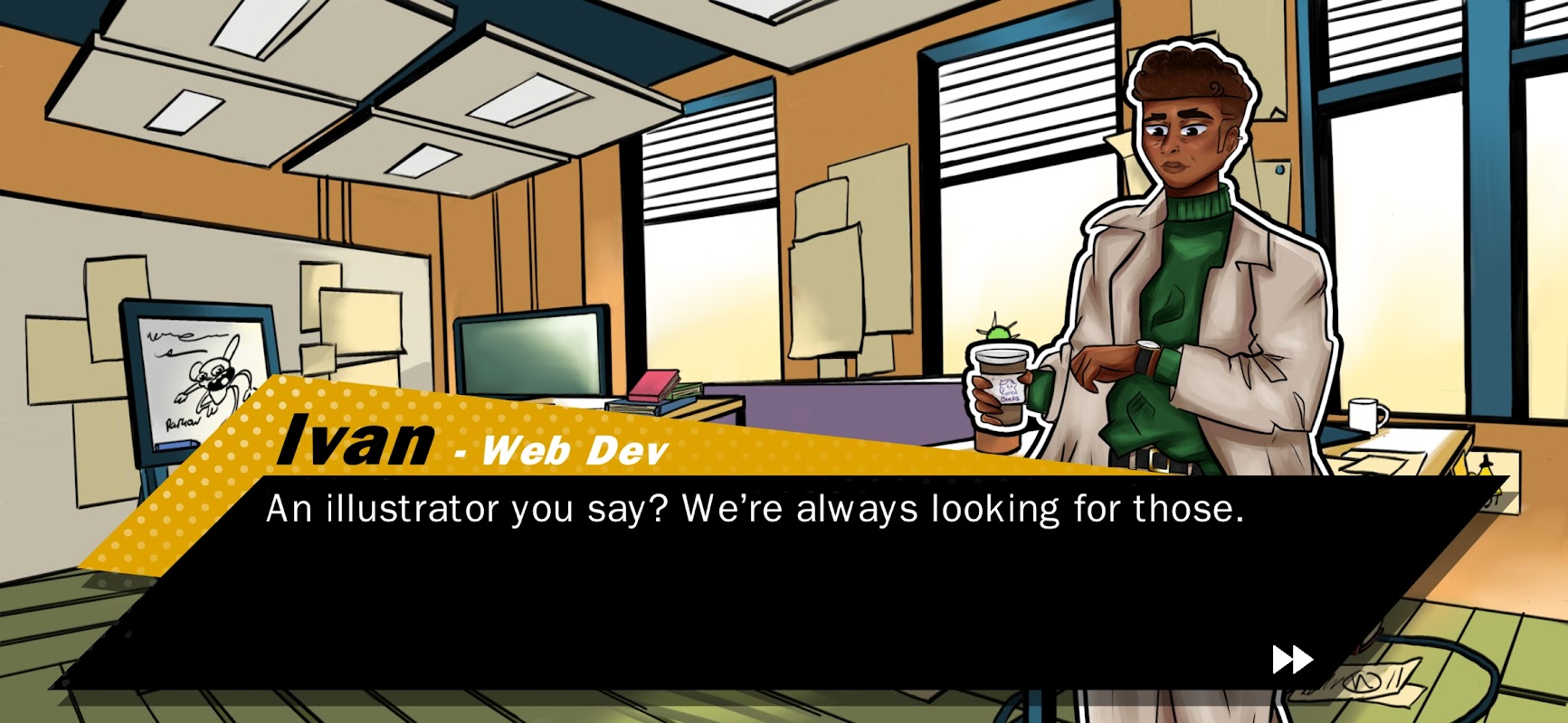 ในฐานะนักเรียนใหม่ที่ย้ายเข้าสู่ Connect-U คุณจะได้รับการต้อนรับจาก Kris เพื่อนบ้านของคุณที่เสนอทัวร์ชม Connect-U ให้คุณ ซึ่งคุณจะได้มีชั้นเรียนบางส่วนและศึกษาต่อจากนี้ เธอแสดงให้คุณเห็นพื้นที่สันทนาการและเครือข่ายต่างๆ ที่คุณสามารถเชื่อมต่อกับนักเรียนและผู้เชี่ยวชาญคนอื่นๆ เพื่อสร้างเครือข่ายของคุณต่อไป เธอยังพาคุณไปเยี่ยมชมสิ่งอำนวยความสะดวกและห้องปฏิบัติการต่างๆ ที่อยู่ภายใน Connect-U สุดท้าย เธอแนะนำให้คุณรู้จักกับบริษัทต่างๆ และโอกาสในการทำงานที่ตั้งอยู่ในอาคาร ที่นี่ คุณจะได้พบกับ Ivan นักพัฒนาเว็บอาวุโสที่มีบริษัทของตัวเองใน Connect-U อีวานมองเห็นพรสวรรค์ของคุณและตัดสินใจทดสอบมัน! ในตอนท้ายของทัวร์ คุณรู้สึกเหนื่อยแต่รู้สึกตื่นเต้นกับอนาคตของคุณ คุณกลับไปที่หอพักและเตรียมพร้อมสำหรับบทใหม่ในชีวิตของคุณ