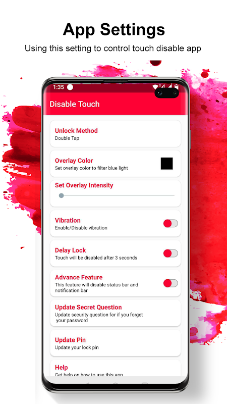 Have you ever been in a situation where you have been irritated due to the accidental clicks when the phone is in your pocket? Do your children take wrong steps by touching different screens of your phone? Here is the key to your all problems in one place.Touch Blocker helps you to disable your mobile touch screen while listening music or watching videos. Touch Locker is a touch disabling app to prevent unintended operations on the touch screen.