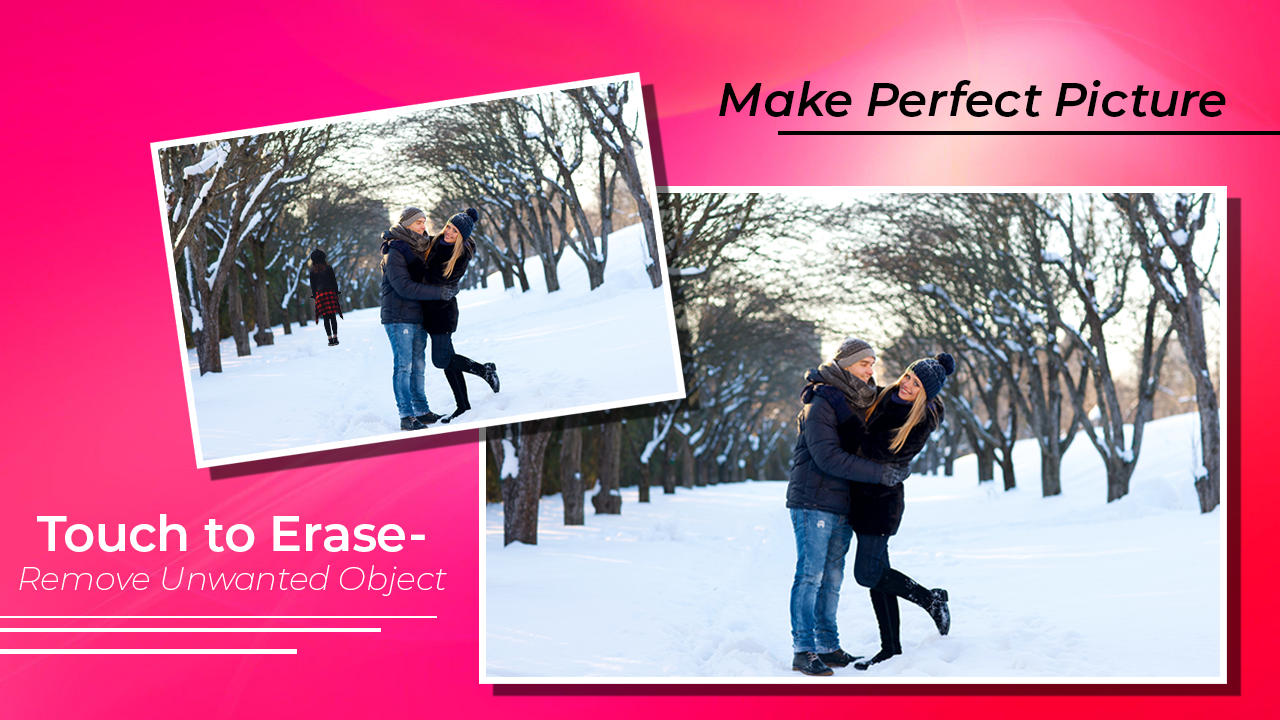 Touch To Erase - Remove Unwanted Objects with simple and easily remove unwanted portion of your image. this app have best tools to make your image awesome Learn how to auto-Remove Objects from your images in no time!Remove Objects is a clever app that lets you remove unwanted content from your photos using just the tip of your finger. You simply brush over the objects you want to remove so that they’re selected in red, then tap “Start” and watch while they magically disappear!