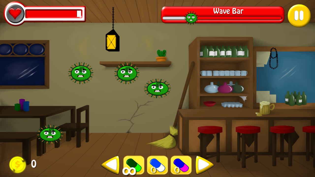 Be a janitor… umm I mean a hygiene supervisor…! yeah… You have a task to clean a room or chamber. However, you are not an ordinary hygiene supervisor. You have a special vision which can detect some dangerous virus. All of the viruses can be defeated using your high-tech medicine gun. Aim and exterminate the virus using the special gun by touch them with your finger.