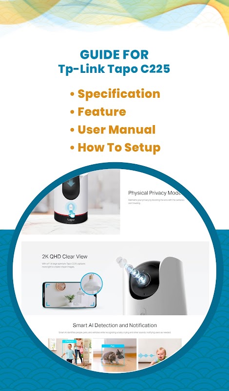 ยินดีต้อนรับสู่แอพแนะนำ TP-Link Tapo C225 ด้วยแอพนี้ คุณสามารถค้นหาข้อมูลเกี่ยวกับสเปค TP-Link Tapo C225, คู่มือผู้ใช้, คุณลักษณะ, วิธีการตั้งค่า และอื่นๆ อีกมากมาย