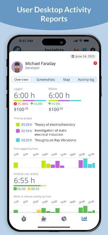 แอพ Time Tracker พร้อมการติดตามเส้นทาง GPS และการจัดการตารางการลา