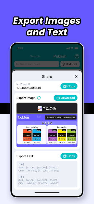 - คัดลอก ID เพื่อนด้วยการแตะเพียงครั้งเดียว: ด้วยการแตะเพียงครั้งเดียว คุณสามารถคัดลอก ID ของเพื่อนได้อย่างง่ายดาย คุณสมบัตินี้ทำให้กระบวนการเพิ่มและจัดการเพื่อนของ PTCGP ง่ายขึ้น การเชื่อมต่อไม่เคยง่ายอย่างนี้มาก่อน