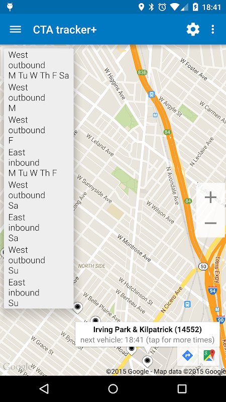 Transit Tracker - Chicago ยังมีความสามารถในการดาวน์โหลดตารางเส้นทางอีกด้วย