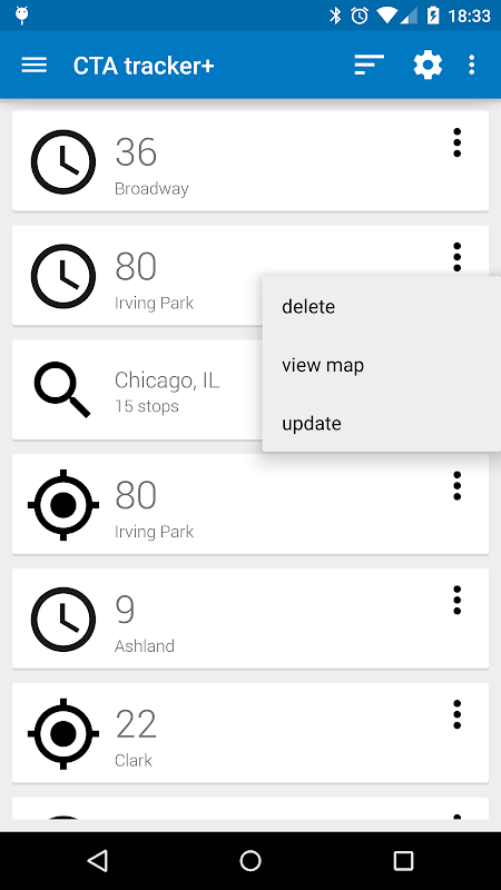 Transit Tracker - Chicago ช่วยให้คุณสามารถกำหนดการแจ้งเตือนสำหรับเส้นทางและจุดจอด CTA รับการแจ้งเตือนเมื่อมียานพาหนะบนเส้นทางเฉพาะกำลังเข้าใกล้หรือถึงจุดจอดเฉพาะ