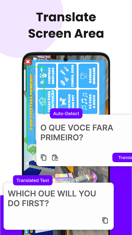 Screen Translator นำเสนอการแปลเสียงและการแชท ช่วยให้ผู้ใช้สามารถสนทนาหลายภาษา แปลคำบรรยายแบบเรียลไทม์ และเข้าใจเนื้อหาต่างประเทศได้อย่างง่ายดาย ไม่ว่าคุณจะดูหนัง เล่นเกม อ่านบทความ หรือแชทกับใครบางคนในภาษาอื่น แอปนี้รับประกันการแปลที่ราบรื่นและแม่นยำเพียงปลายนิ้วสัมผัส