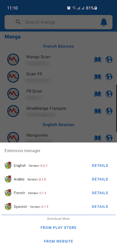 - Several sources of manga for each language