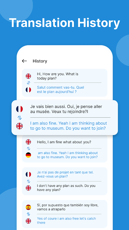 tel ดูการพูดภาษาอังกฤษในประวัติศาสตร์การแปลภาษาอูรดูซึ่งจะถูกบันทึกโดยอัตโนมัติและคุณบันทึกคำแปลที่คุณชื่นชอบแยกกันเช่นกัน คุณยังสามารถลบบันทึกรายการโปรดและประวัติได้เช่นกัน คุณยังสามารถใช้การแปลแชทซึ่งจะถูกบันทึกโดยอัตโนมัติและลบการแปลนั้นได้เช่นกัน