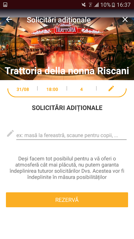 โปรแกรมถูกออกแบบมาให้คะแนนความจงรักภักดี Trattoria della เครือข่าย Nonna สถานที่ จองโต๊ะได้อย่างรวดเร็วหรือทำให้การสั่งซื้อล่วงหน้าเพลิดเพลินไปกับอาหารล่าสุดจากเมนูและโปรโมชั่นเครือข่ายที่ใช้ได้ ด้วย Trattoria ง่ายที่จะได้รับในการติดต่อโดยตรงกับเจ้าหน้าที่ผู้ดูแลโดยไม่ต้องมีการปรากฏกายในการปกครองท้องถิ่นหรือไม่มีการขอความช่วยเหลือ นอกจากนี้คุณยังสามารถเปลี่ยนความภักดีบัตรทางกายภาพและการประยุกต์ใช้ดูแลเพื่อให้คุณส่วนลดเดียวกัน สิ่งที่คุณต้องทำคือการใส่รหัสบัตรของคุณ มันง่ายใช่มั้ย? คุณมีทุกอย่างที่ปลายนิ้วของคุณในการใช้โทรศัพท์มือถือเพียงครั้งเดียว! มันสะดวกและใช้งานง่ายทันสมัยและมีประสิทธิภาพ Trattoria della Nonna ยินดีต้อนรับสู่ - ที่คุณกินดี!