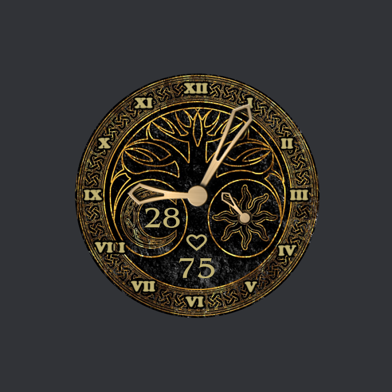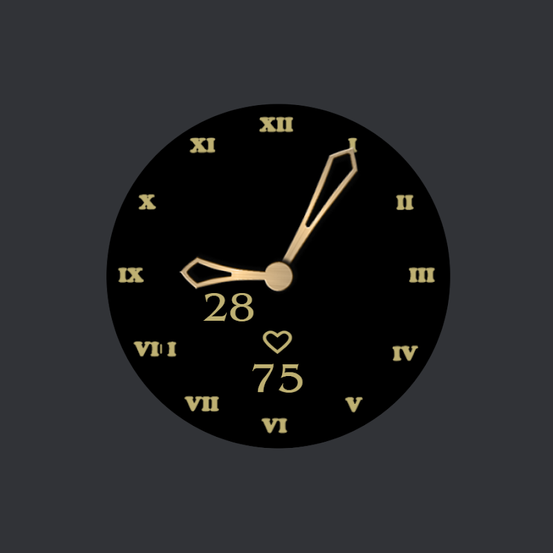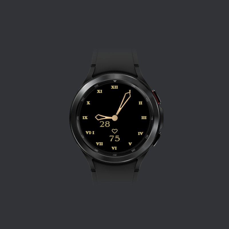 หน้าปัดสไตล์โบราณสีดำและสีขาวเรียบง่ายพร้อมตัวเลขโรมัน วันที่ และอัตราการเต้นของหัวใจ