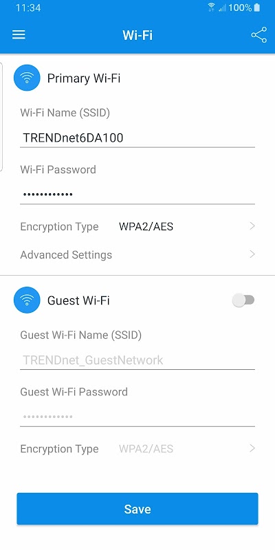 แอพ TRENDnet Mesh ได้รับการออกแบบมาเพื่อช่วยให้คุณติดตั้งและจัดการระบบเราเตอร์ไร้สาย TRENDnet WiFi Mesh ของคุณได้อย่างสะดวกจากโทรศัพท์มือถือของคุณ ครอบคลุมบ้านหรือสำนักงานขนาดเล็กของคุณด้วยการครอบคลุม WiFi ที่รวดเร็วและเชื่อถือได้ นอกจากนี้เพียงเพิ่มเราเตอร์เครือข่ายตาข่ายของ TRENDnet WiFi เพิ่มเติมเพื่อขยายพื้นที่ให้บริการ WiFi ของคุณให้ดียิ่งขึ้น