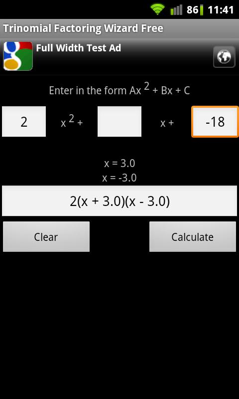 Trinomial Factoring Free 1.8