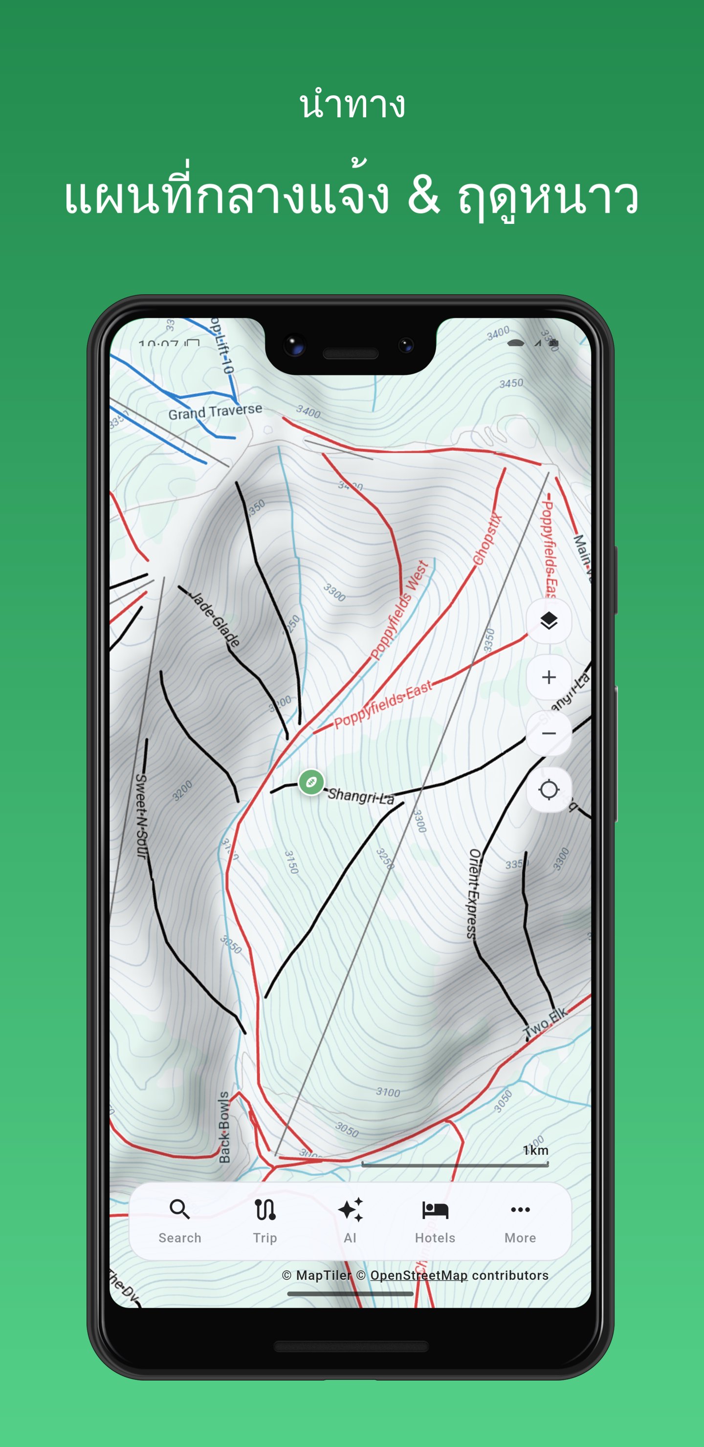 เลือกจากแผนที่การเดินทางหลายแบบรวมถึงแผนที่กลางแจ้ง แผนที่ฤดูหนาวที่เหมาะสำหรับการเล่นสกี และแผนที่ดาวเทียม