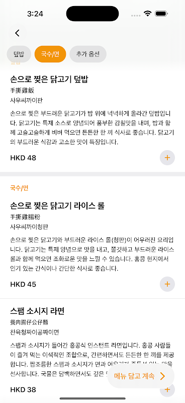 • แตะเพื่อเลือกอาหาร เพิ่มรายการอาหารที่ต้องการ และสร้างใบสั่งซื้อภาษาท้องถิ่นที่พร้อมแสดง