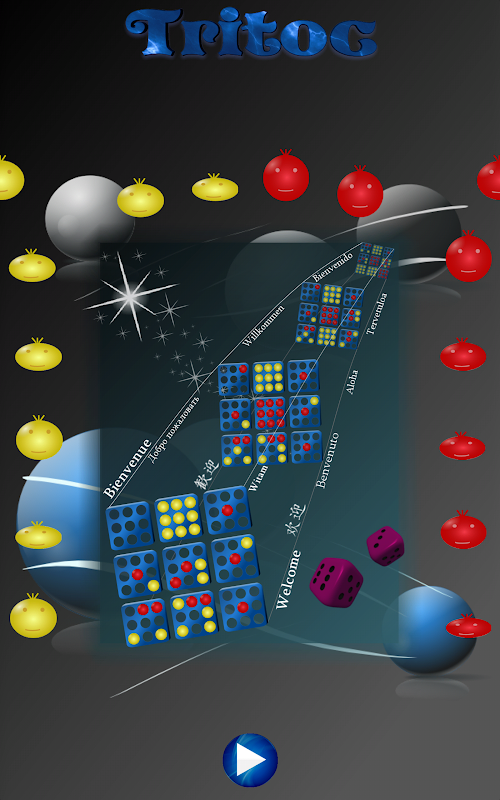 Tritoc is a modified version of the popular Tic-Tac-Toe game using dice to place pieces on 3x3 Tic-Tac-Toe boards of size 3x3 each.