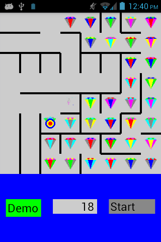 Start by using the left button to choose play or demo mode. Demo mode will show the rubies being collected.