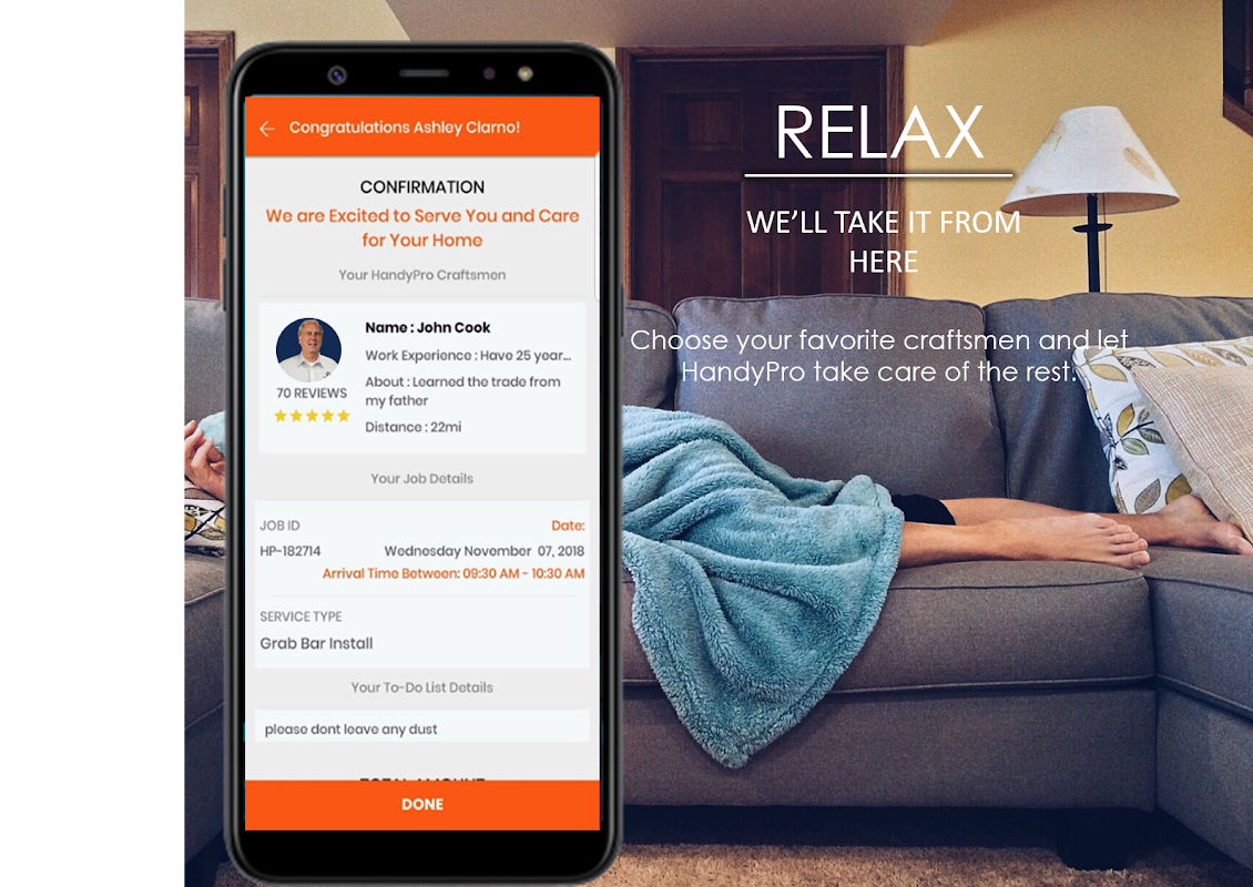 ผ่อนคลาย. รับประกันความพอใจ HandyPro - ความพึงพอใจของลูกค้า 100% และ "ตรงเวลา"