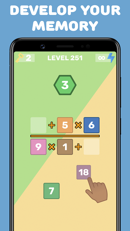 ✔ The first 24 levels are easy, so that you can remember the basic mathematical rules. And then the more difficult levels begin