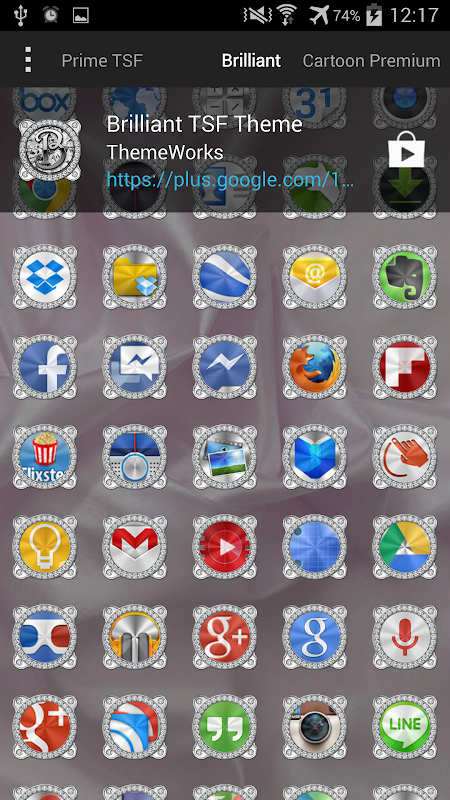 พรีเมี่ยมนี้ Brilliant ธีม TSF เชลล์ 3D เข้ากันได้จะทุกความละเอียดหน้าจอโทรศัพท์และหุ่นยนต์ทุกรุ่นจาก 2.0 ขึ้นไป