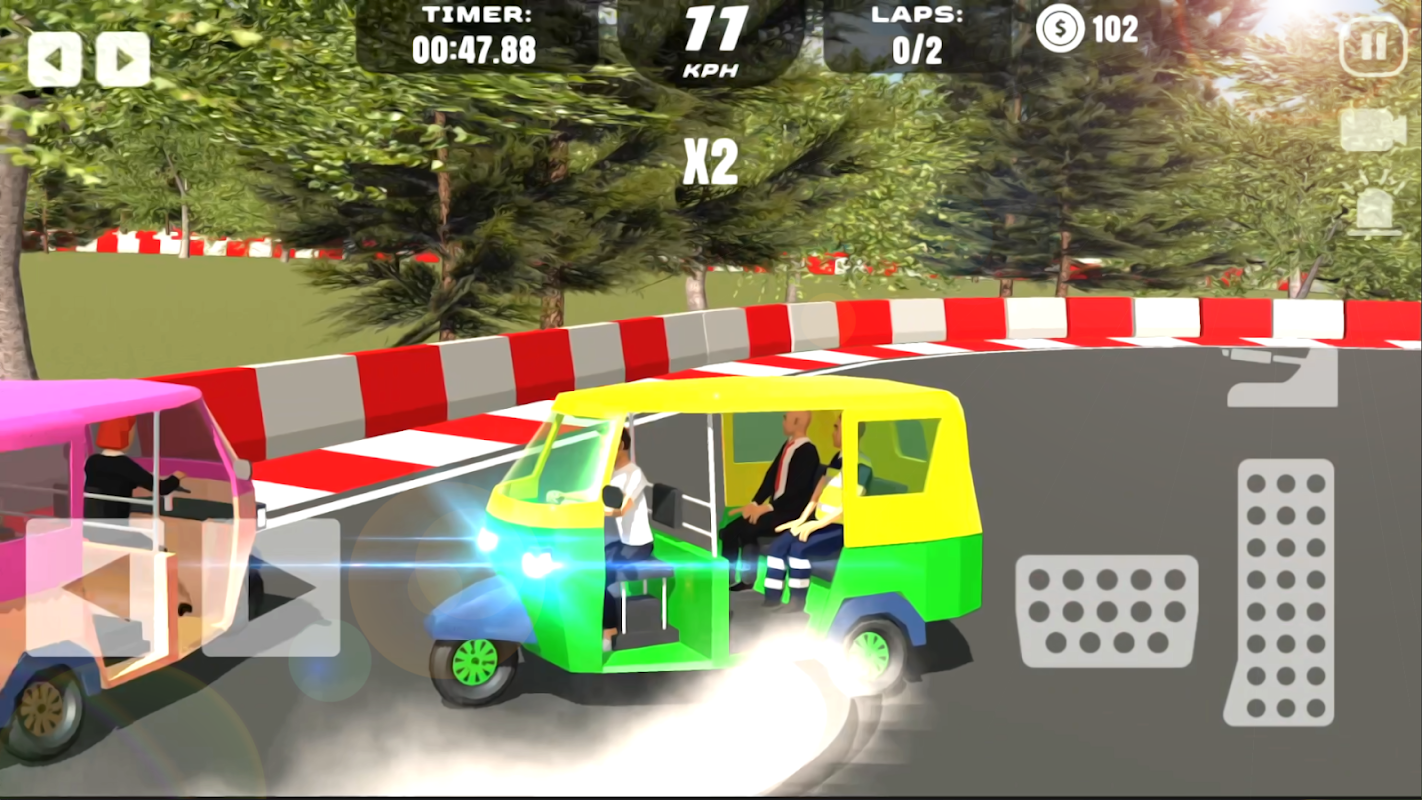 เล่นเกมจำลองการขับรถตุ๊กตุ๊กที่สมจริง ท้าทาย และสนุกที่สุด เลือกตัวละครนักขับรถตุ๊กตุ๊กของคุณ ปรับเปลี่ยนและปรับแต่งสีตัวถัง สีขอบล้อ สีหน้าต่าง มุมแคมเบอร์ของ Rickshaw แข่งกับคนขับรถตุ๊กตุ๊ก AI และรับเงิน อัปเกรดรถตุ๊กตุ๊กของคุณด้วยเงินที่ได้รับ อัปเกรดความเร็วสูงสุด อัตราเร่ง และเบรกของรถตุ๊กตุ๊ก