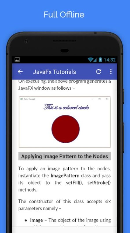 Tutorials for JavaFx Offline is a complete application for those of you who want to learn JavaFx easily and for free. There are dozens and even hundreds of JavaFx tutorials starting to base for beginners to advanced. All these tutorials you can read offline without the need to connect to the internet or mobile data.