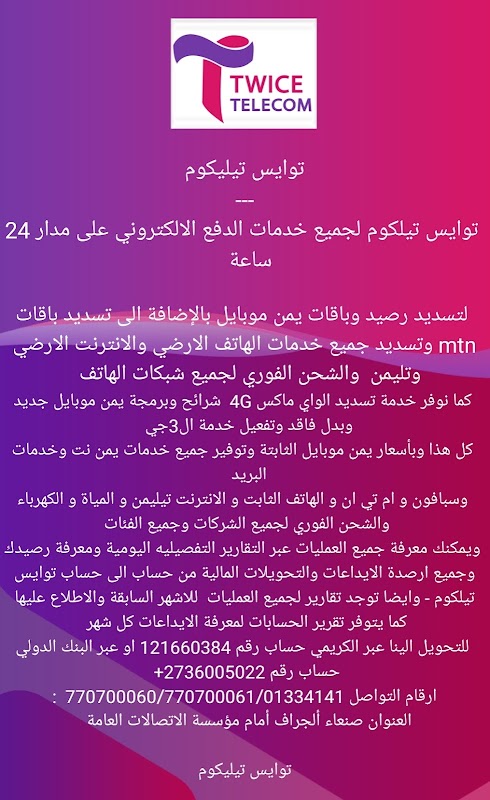 และตัวแทนบริการโทรคมนาคมทั้งหมดในเยเมน
