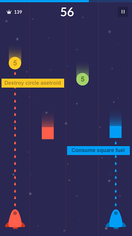 Earth is being attacked from evil asteroids. As a commander of space shooting agency its your task to save the earth by destroying the asteroids. You will have control over two space shooter falcons. The space shooter falcons will have limited fuel but luckily, space falcons fuel are randomly distributed in space from unknown sources. Consume those fuels to charge your bullet. In this space shooting game, you will be facing an increasingly large number of enemies in hazardous environments. As the game progresses, you will your agility and multitasking ability will be tested.
