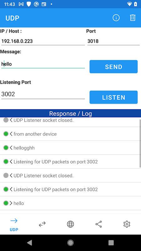 • ทดสอบการเชื่อมต่อ UDP เป็นทั้งไคลเอ็นต์และเซิร์ฟเวอร์