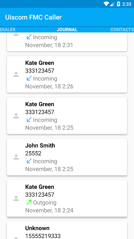 การใช้แอปพลิเคชันช่วยให้คุณประหยัดจากปัญหาเหล่านี้ คุณสามารถทำงานกับการโทรในช่อง FMC ในแบบที่คุณโทรในชีวิตประจำวันได้เสมอโดยกดหมายเลขโทรศัพท์ของสมาชิกของคุณในแบบมาตรฐานทั้งด้วยตนเองและผ่านรายชื่อผู้ติดต่อ เมื่อทำการโทรจากแอปพลิเคชันระบบจะแทนหมายเลข 9 เมื่อรับสายเรียกเข้าบนสาย FMC หมายเลขของผู้โทรจะปรากฏขึ้นโดยไม่มี“ เก้า” หรือคุณจะเห็นชื่อของผู้โทรหากผู้โทรอยู่ในรายชื่อผู้ติดต่อ แอปพลิเคชันอ่านและแสดงบันทึกการโทรของระบบ