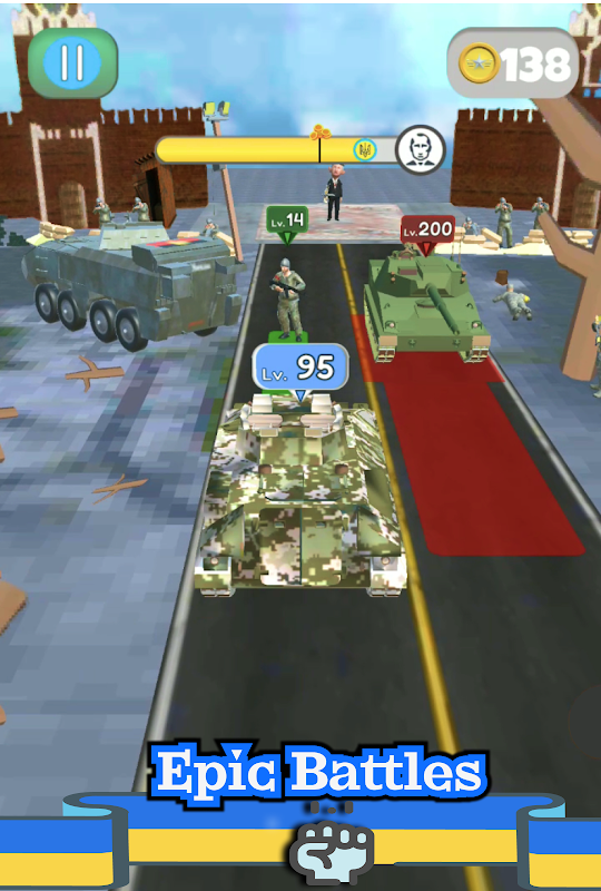 คุณต้องวิ่งผ่านเส้นทางที่ยากลำบากตั้งแต่ทหารตัวเล็ก ๆ ไปจนถึงรถถังยักษ์เพื่อเอาชนะบอสที่ทรงพลัง! ทำเพื่อศักดิ์ศรีและศักดิ์ศรี !