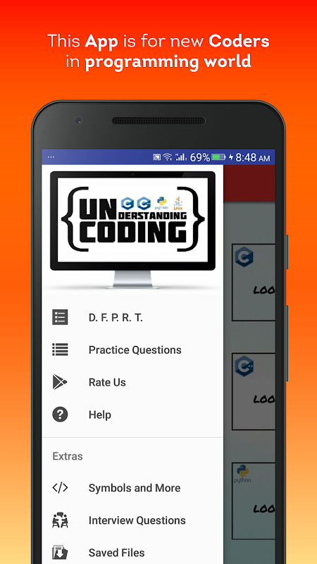 "การทำความเข้าใจการเข้ารหัส" แอปสำหรับผู้ที่รู้ไวยากรณ์ของการเข้ารหัส แต่ไม่ทราบว่าที่ไหนและเมื่อไหร่ที่จะใช้ไวยากรณ์ที่ บางครั้งเราต้องปฏิบัติมากขึ้นที่จะเข้าใจการเขียนโปรแกรม ใน app นี้เกือบทุกหัวข้อที่สำคัญของการเขียนโปรแกรมภาษา (C, C ++, Python และ Java) ได้ครอบคลุมโดยเรา รหัสไม่กี่จะมีสำหรับหัวข้อของการเขียนโปรแกรมภาษาทุกซึ่งจะช่วยให้ coder การสร้างตรรกะสำหรับการเข้ารหัส