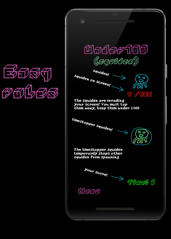 They are appearing all over your screen, squiden is everywhere. Tap them to remove them, if they reach 100 you lose. It's quite the finger exercise. Figure out the best tapping technique and compete for the highest score on the leaderboards!
