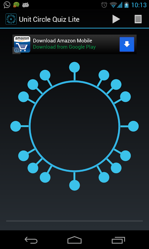 This is the same app as the Unit Circle Quiz (https://play.google.com/store/apps/details?id=com.chrisk.UnitCircleQuiz), with the addition of ads. All features present in the paid app are present in this one!
