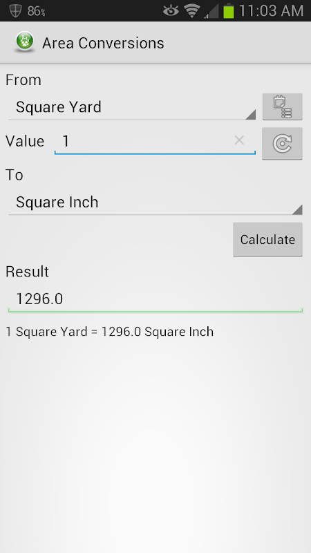 ** If you would like to copy the output of a conversion Long-Press the result box and a pop-up will allow you to copy it to the clipboard. Then you can Long-Press the input value box and select paste.
