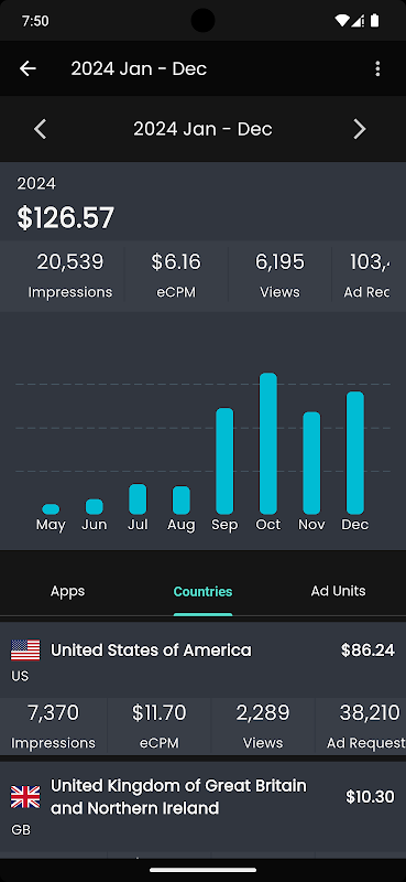 - ดูสิ่งที่คุณได้รับ: เห็นภาพที่ชัดเจนของรายได้รายวัน รายสัปดาห์ รายเดือน และรายปีจากการโฆษณาในแอป
